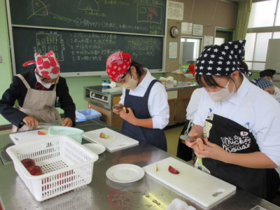 最後までエプロン、三角巾、マスクも付けて衛生的に配膳をしてくれています。今日は、美味しく食べる3年3・4組生徒の様子をご紹介します。